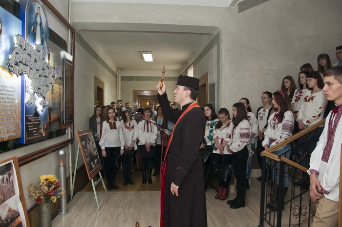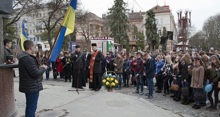 21 лютого у приміщенні Галицького коледжу імені В'ячеслава Чорновола (І корпус, Тернопіль) відбулося молитовне вшанування Героїв Небесної Сотні, які віддали своє життя за Україну. Молитву перед меморіалом очолив о. Олег Харишин, настоятель студентського храму Покрови Пресвятої Богородиці. Студенти у мистецький спосіб представили присутнім відомості про хлопців-героїв, які походять із Тернопільщини.