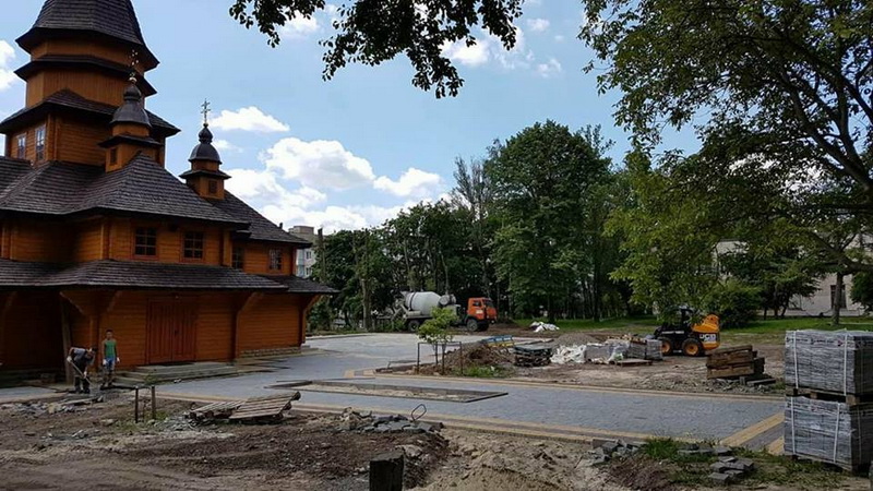 Впродовж літа 2017 року на парафії Покрови Пресвятої Богородиці здійснюється благоустрій подвір’я: вистелено бруківку, облаштовано клумби, висаджено дерева і квіти та встановлено освітлення. Пропонуємо вибірковий фотозвіт. Також приходять до завершення роботи по оздобі святилища храму, де станом на сьогодні вже встановлено престіл, проскомидійник, тетрапод та іконостас. Іконописець Володимир Свідерський довершує написання ікон для іконостасу, які будуть встановлені до храмового празника Покрови Пресвятої Богородиці.