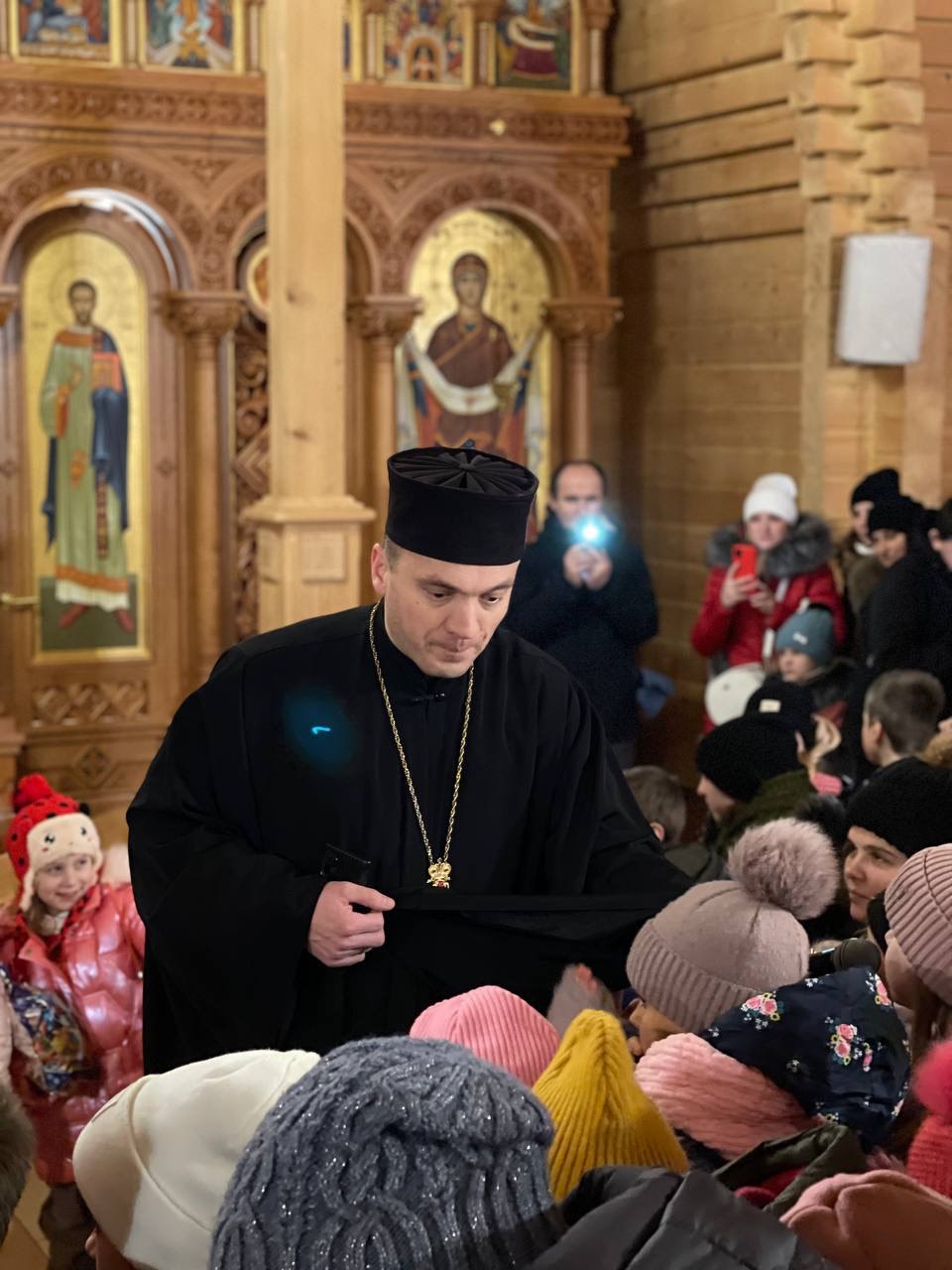 В очікуванні св. Миколая настоятель храму Покрови Пресвятої Богородиці о. Олег Харишин разом з дітворою поспівали пісень та ще раз пригадали собі про добрі справи святителя, які виявлялися в підтримці ближніх, допомоги тим, що потребують та ділах милосердя до яких покликаний кожний щирий християнин.